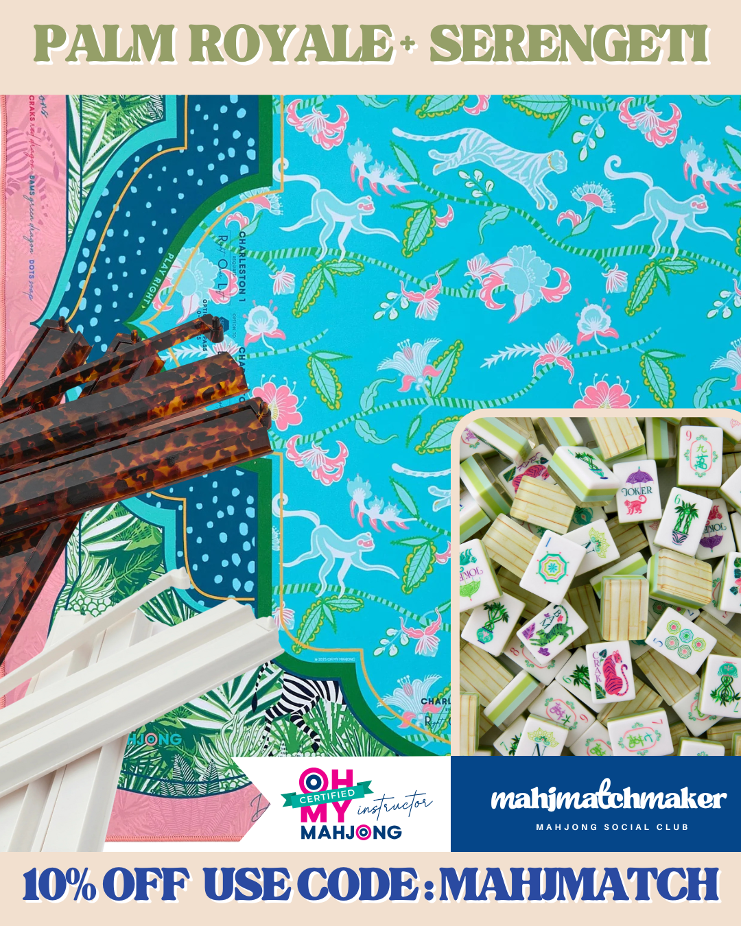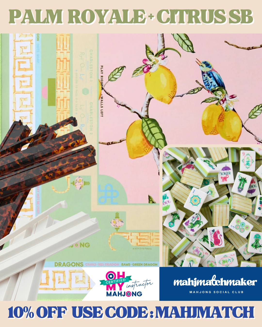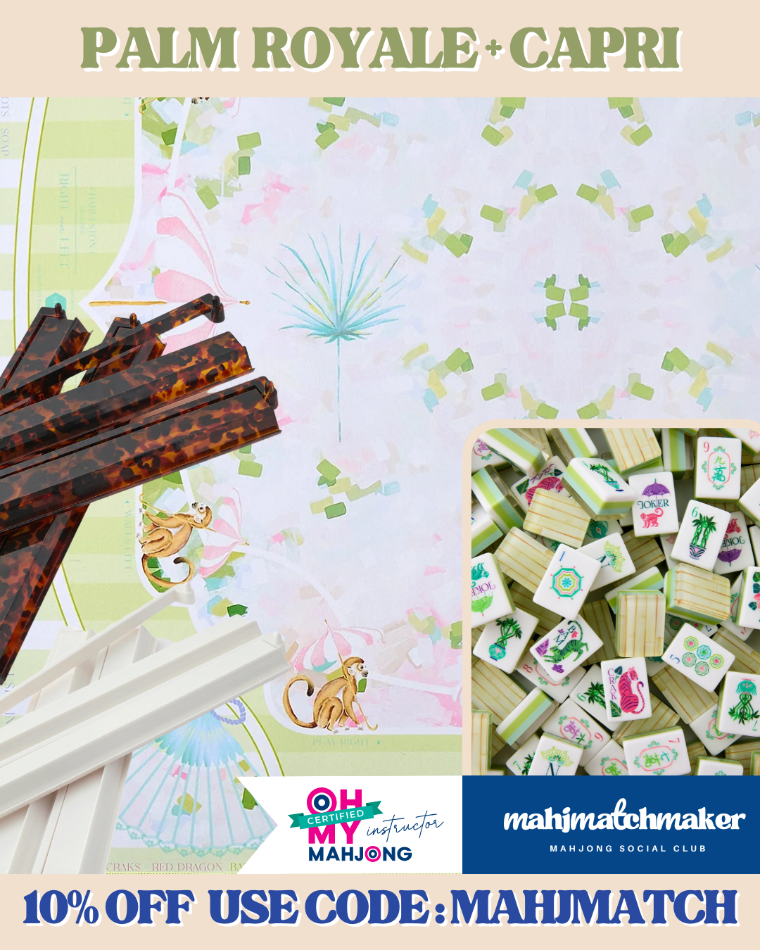 See beautiful mat and rack combinations that pair perfectly with Oh My Mahjong Palm Royale tiles.